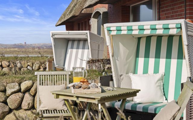Ein ideales Zuhause für alle, die Ruhe, Natur und gehobenes Wohnen in perfekter Kombination suchen. Die stilvolle Terrassenwohnung befindet sich in einem für Sylt typischen Reetdachhaus und verbindet auf harmonische Weise die friesische Baukultur mit modernem Wohnkomfort.